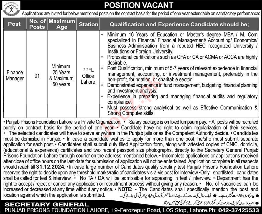Latest Job in Punjab Prisons Foundation in Lahore 2024 Vacant positions, including Finance Manager, have been announced by the Punjab…