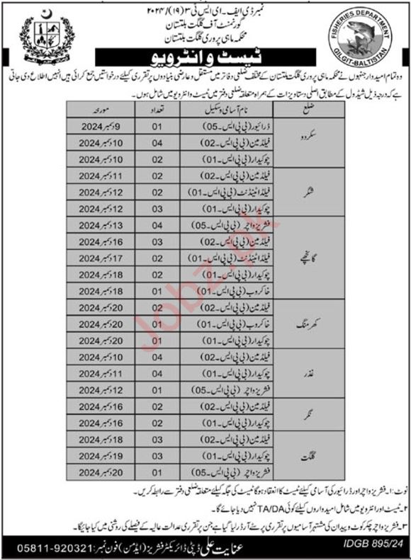 Latest Job in Fisheries Department in Gilgit The Fisheries Department in Gilgit, Gilgit Baltistan, Pakistan, has announced vacancies for the…