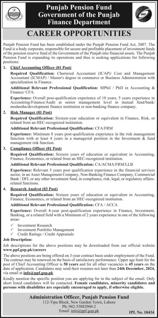 Latest Job in Finance Department in Lahore 2024